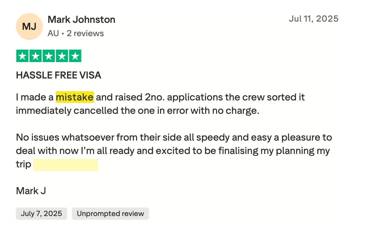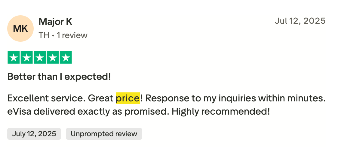 Major K’s feedback truly means the world to us as we always want to bring our services accessible to everyone in need. That’s why we clearly list our visa fees upfront and include every charge in the total — with no surprises.